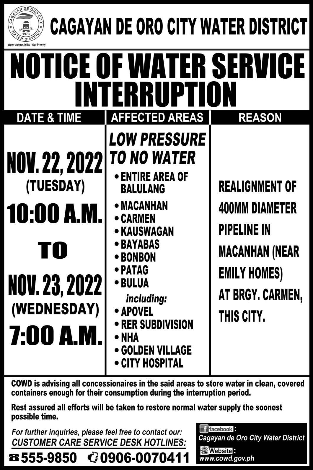 BWM Nov. 21, 28 & Dec. 5, 2022 Republic of the Philippines DEPARTMENT OF LABOR AND EMPLOYMENT Regional Office No. X Northern Mindanao Trinidad Building, Corrales-Yacapin Street, Cagayan de Oro City Tel: (088) 858-1658 * E-mail: dole10.imsd@gmail.com NOTICE OF FILING OF APPLICATION FOR ALIEN EMPLOYMENT PERMIT (AEP) Notice is hereby given that the following employers have filed with this Regional Office application/s for AEPs Name and Address of Employer: POWERCHINA B7 PHILIPPINES CORP., Purok 1 Tacub Kauswagan Lanao del Norte ANY PERSON IN THE PHILIPPINES WHO IS COMPETENT, ABLE AND WILLING TO PERFORM SERVICES FOR WHICH THE FOREIGN NATIONAL IS DESIRED MAY FILE AN OBJECTION AT THE DOLE REGIONAL OFFICE WITHIN 30 DAYS AFTER THIS PUBLICATION. PLEASE INFORM THE DOLE REGIONAL OFFICE IF YOU HAVE ANY INFORMATION ON CRIMINAL OFFENSE COMMITTED BY THE FOREIGN NATIONALS Please inform DOLE Regional Office X if you have any information on criminal offense committed by the foreign nationals.