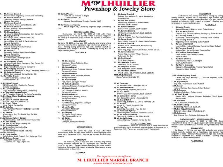 11 FOR ADS PLACEMENT CALL OR TEXT: +63917-712-1424 • +63947-893-5776 E-Mail: mindanaodailynews@gmail.com Thursday, February 9, 2023