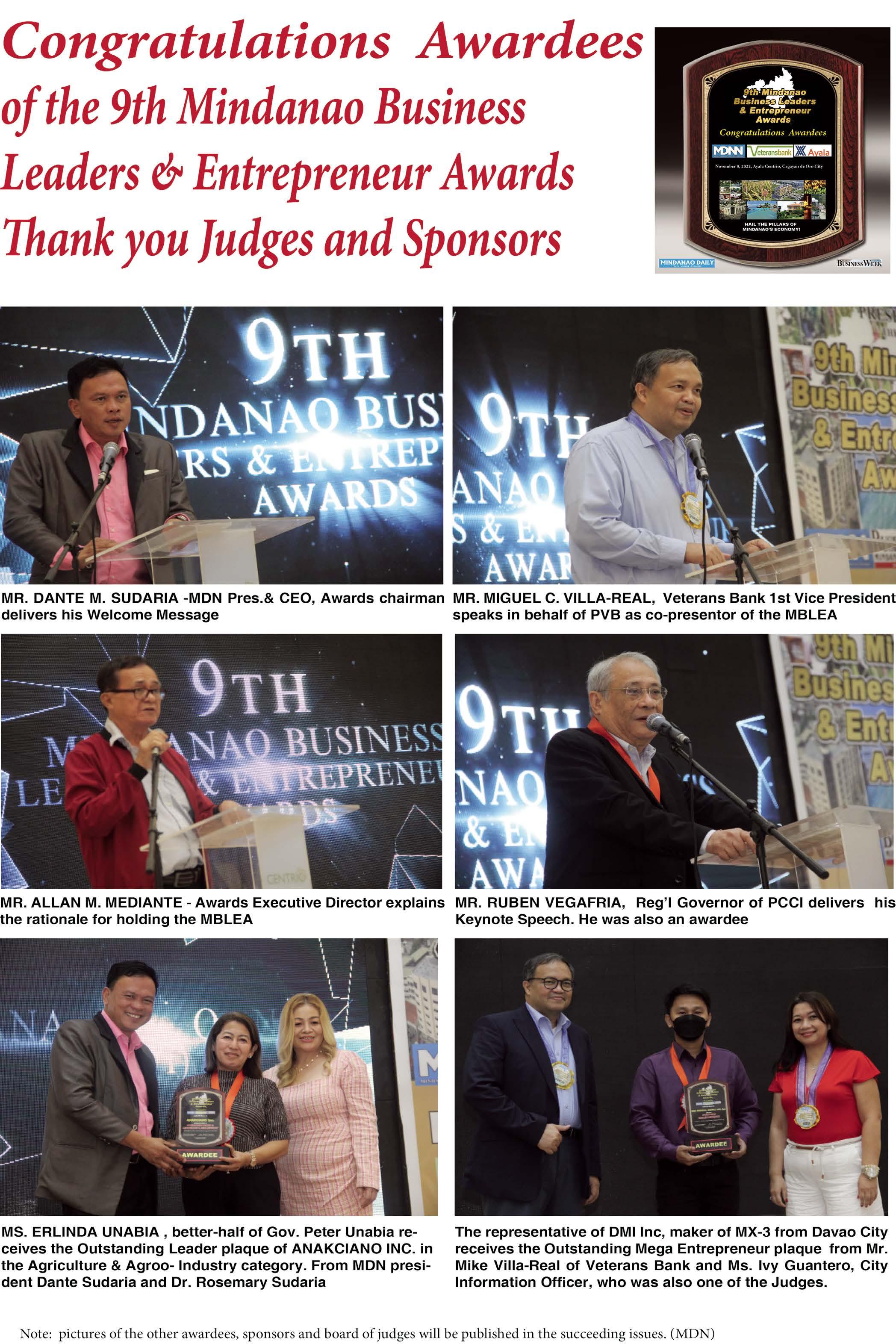 2 FOR ADS PLACEMENT CALL OR TEXT: 0917-712-1424 • 0947-893-5776 mindanaodaily.ads@gmail.com Editor: Allan Mediante Thursday, November 17, 2022