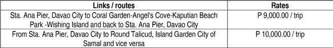 Before us is an application for the amendment of the Certificate of Public Convenience, of the above-named applicant for the inclusion of the vessel MBCA “APL REY” to his fleet and to operate the vessel in an island tour service for the carriage of passengers and for tourism purposes only, on a daily deregulated sailing schedule, from 6:00 AM to 4PM, in the following routes and rates: