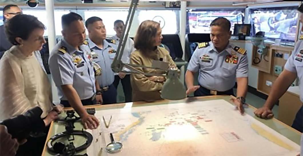 “America’s prosperity relies on the billions of dol lars that flow through these waters every day. And we are proud to work with you in your mission,” she said, addressing the Philippine Coast Guard (PCG). “As an ally, the United States stands with the Philippines in the face of intimidation and coercion in the South China Sea.”