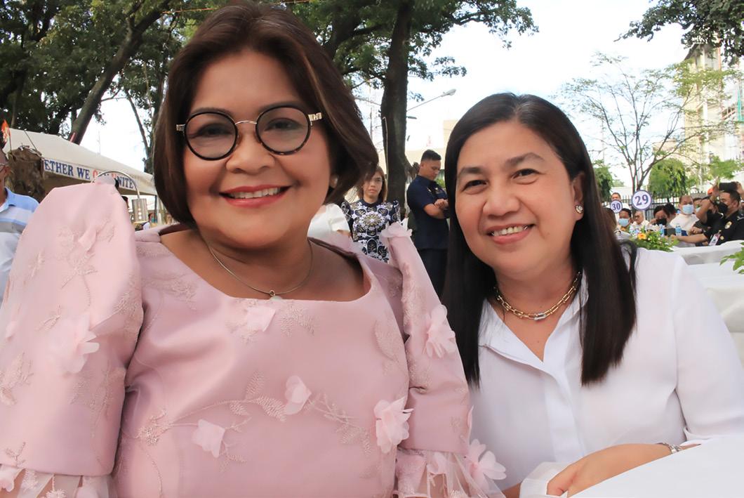 Misamis Oriental Former Sangguniang Panlalawigan member Vergelia ‘Bebing’ Du madag (left), now Consultant political affairs of Gov. Peter M. Unabia, with mayoral chief of staff Sheila Lumbatan during Unabia’s first 100 days report on Oct 11. 2022. photo by gerry lee gorit