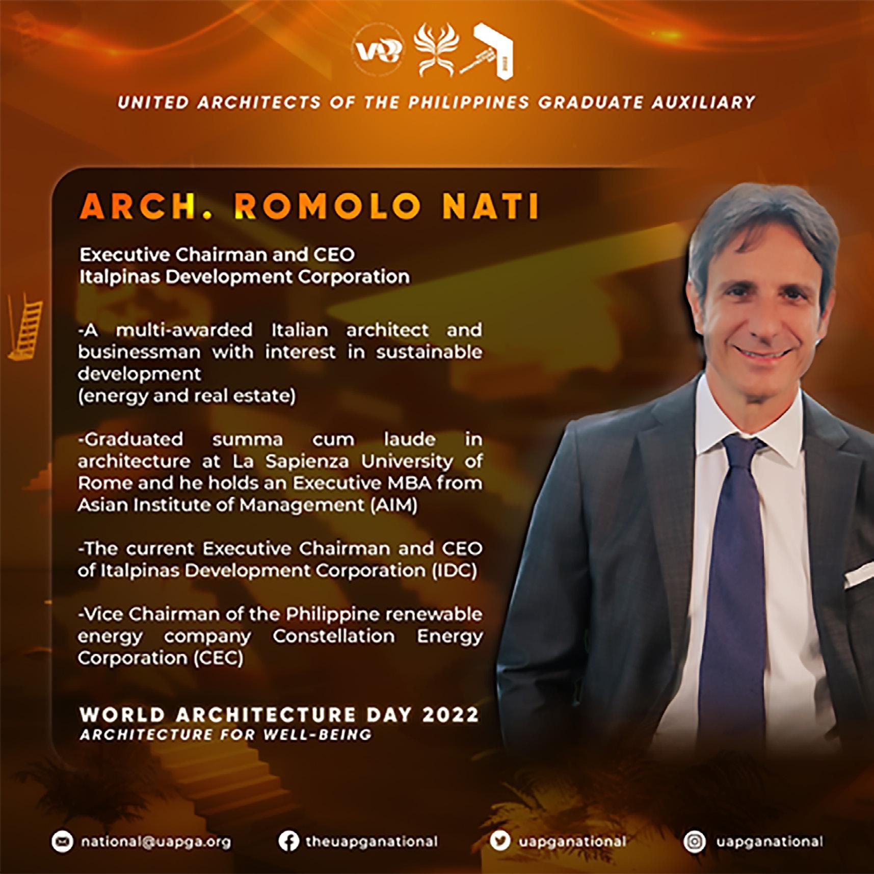 LAST October 2, 2022, IDC’s Chairman and CEO Arch. Romolo V. Nati joined the United Architects of the Philippines Graduate Auxiliary to celebrate the recent World Architecture Day 2022 together with Arch. William Ti Jr. of WTA Architecture and Design Studio, a company that seeks to redefine the role of architecture in our society and focus on the creation of positive social impacts.