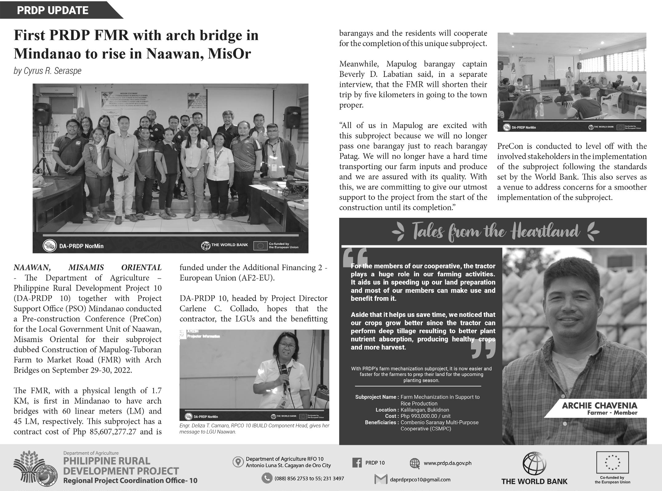 On the other hand, DA-10 Regional Technical Director for Operations Carlota S. Madriaga conveyed the importance of hav ing an agri-fishery mechanization plan, especially in empowering LGUs to help identify the equip ment, production and postharvest machinery and facilities needed in an area.