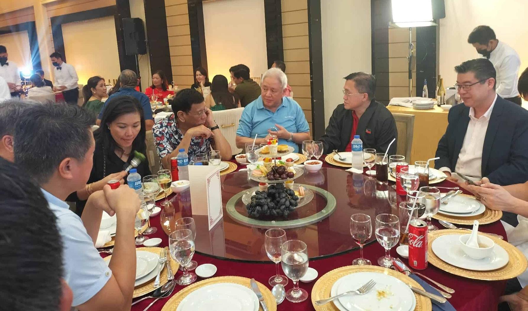 FENG shui geomancer Melvin Sua (right) hobnobs with guests which include former President Rodrigo Duterte (second from left facing camera in the roundtable) and Sen. Christopher Lawrence Go (to Sua’s right).