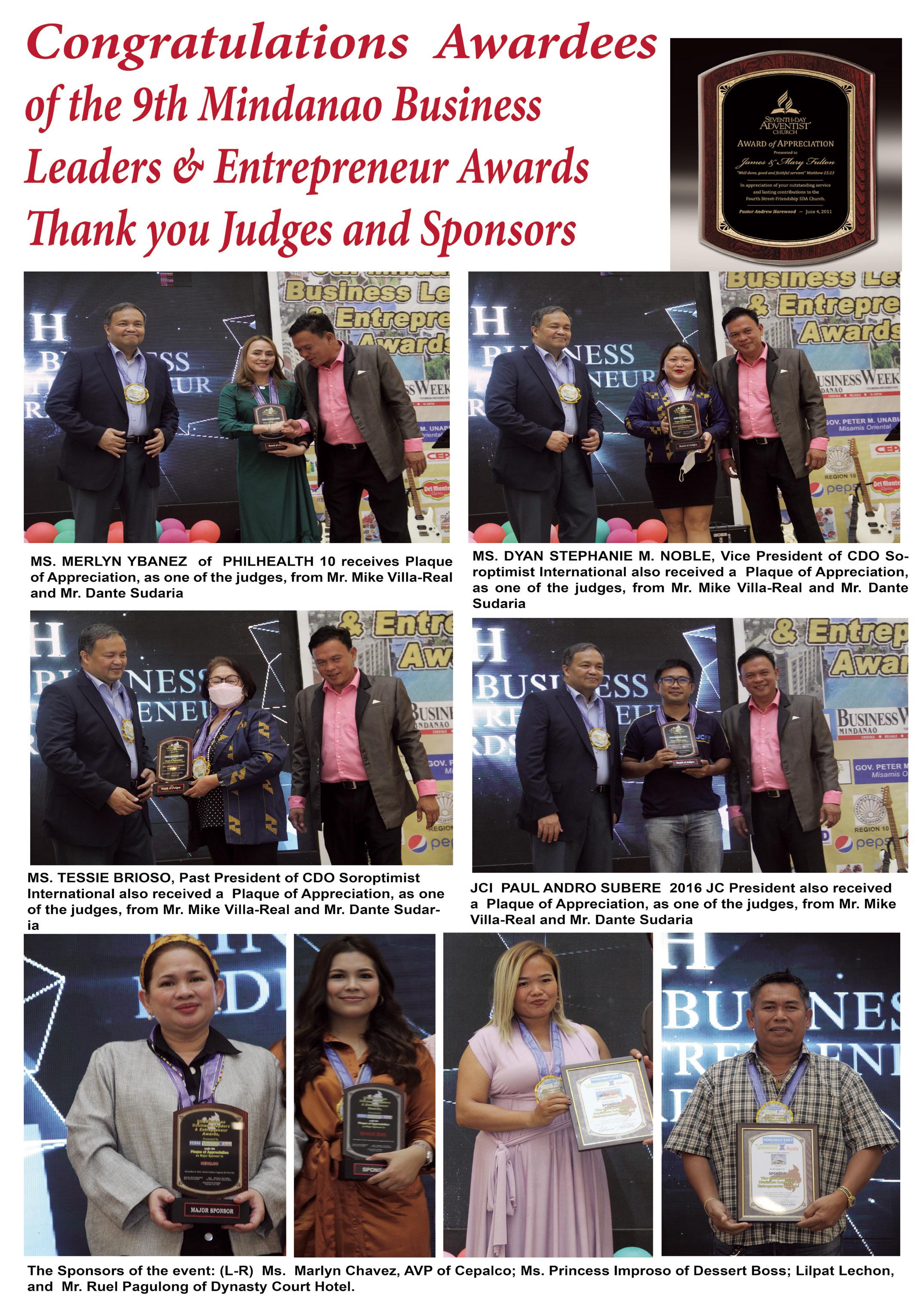 Some of the awards given include Best Hair Salon, Best Local Coffee Shop, Best Local Milk Tea House, Best Local Restaurant, and Inspiring Muslim Entrepreneur of the Year, Inspiring Indigenous People Entrepreneur of the Year. ( LELA/PIA-10/Lanao del Norte )