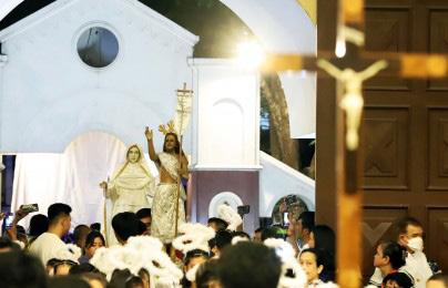REENACTMENT. Devotees join reenactment of the meeting of the risen Jesus and his mother, the Blessed Virgin Mary, at Sacred Heart Parish Shrine, Quezon City on Easter Sunday (April 8, 2023). Easter marks the end of Holy Week. (PNA photo by Robert Oswald P. Alfiler)