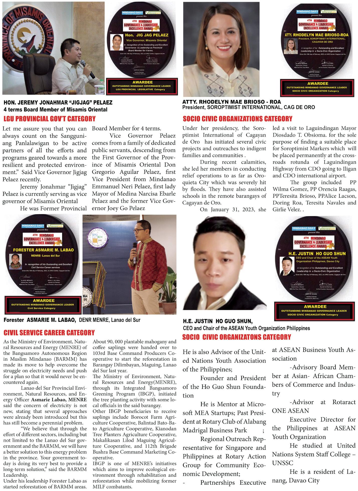 Top Governance Executive, Military Leaders and LGU Officials lead the Awardees of the 4th Mindanao Governance and Leadership Excellence Awards