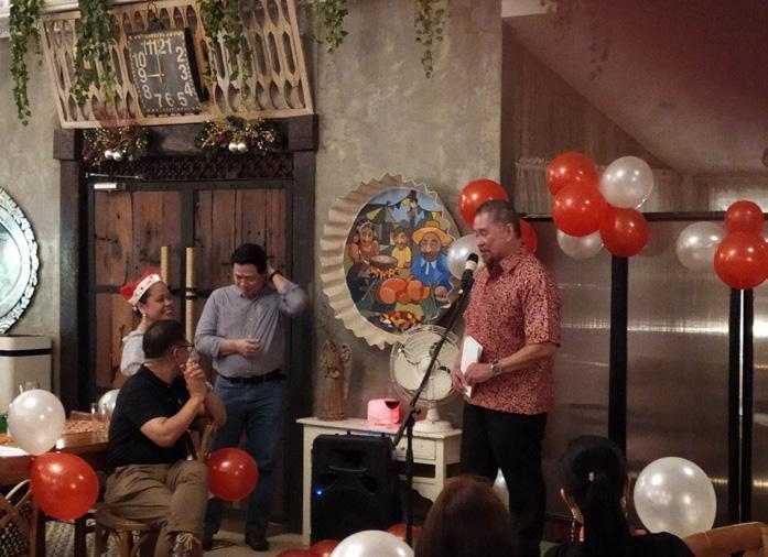In his welcome remarks, host Frank Guerra pointedly recognized the efforts of past Trustee Ma.Teresa “Ghaye” Alegrio whom he said but for her tragic early demise, would have made an ideal BOT Chair to succeed him. Ms. Alegrio was represented by her husband Jun.