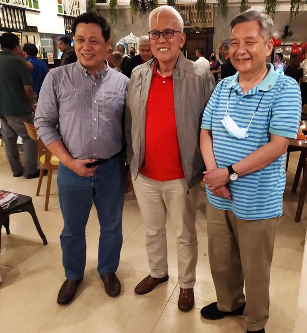 Fr. Mars Tan, Roy Sobrecaray and Fr Bobby Yap reenact a photo they took together some time ago.