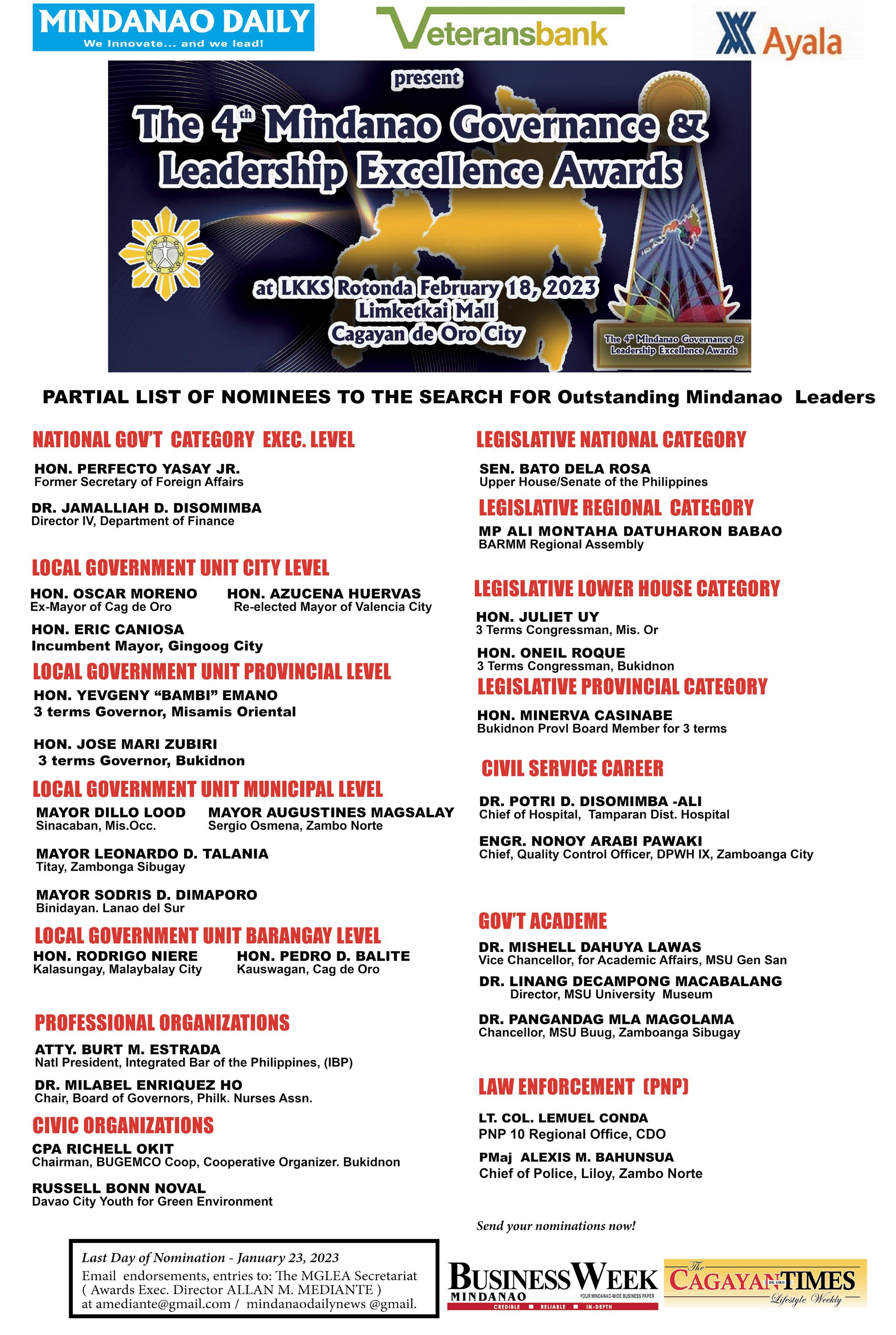 3 FOR ADS PLACEMENT CALL OR TEXT: 0917-712-1424 • 0947-893-5776 mindanaodaily.ads@gmail.com Editor: Allan Mediante Friday, December 23, 2022
