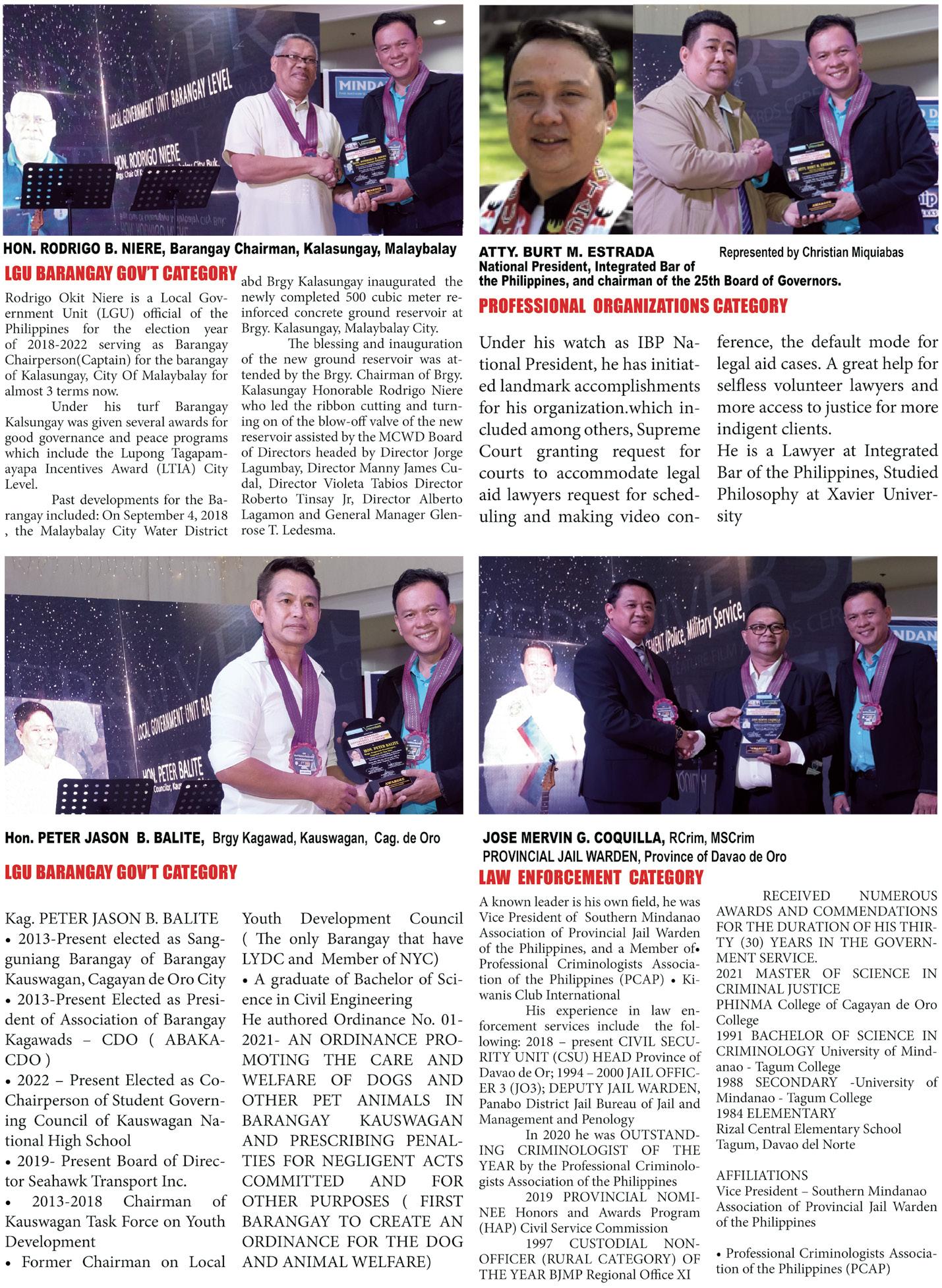 Top Governance Executive, Military Leaders and LGU Officials lead the Awardees of the 4th Mindanao Governance and Leadership Excellence Awards