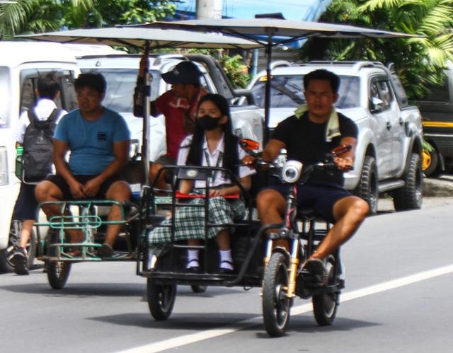 ELECTRIC TRICYCLE. Electric tricycles are slowly replacing the customized bicycles or trisikad as a means of public transport in Davao City. Mindanews Photo taken May 31, 2023