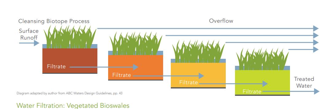 Vegetated swales have the intention to increase sedimentation and improve the water run-off quality (Yau et al, 2017).