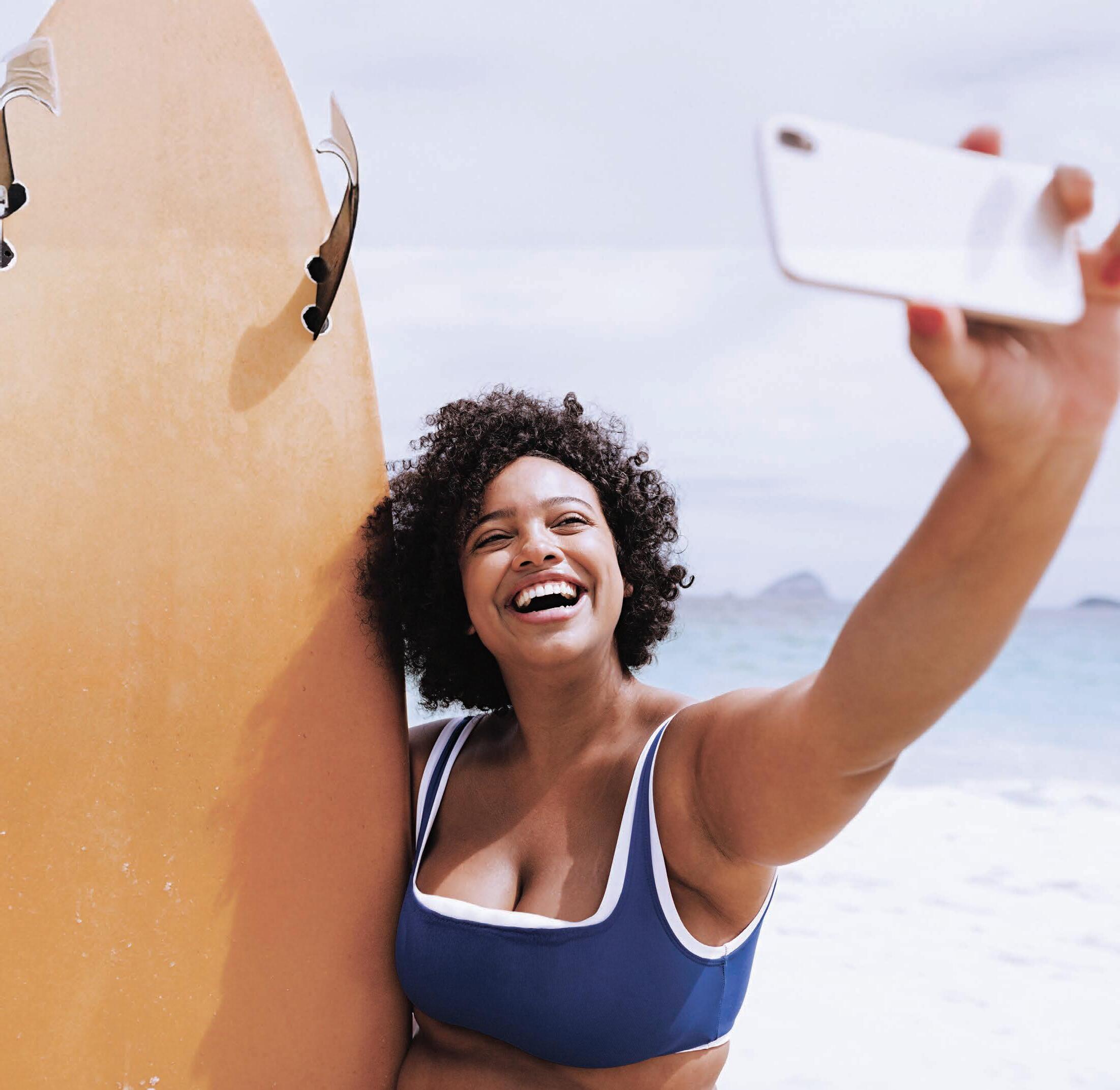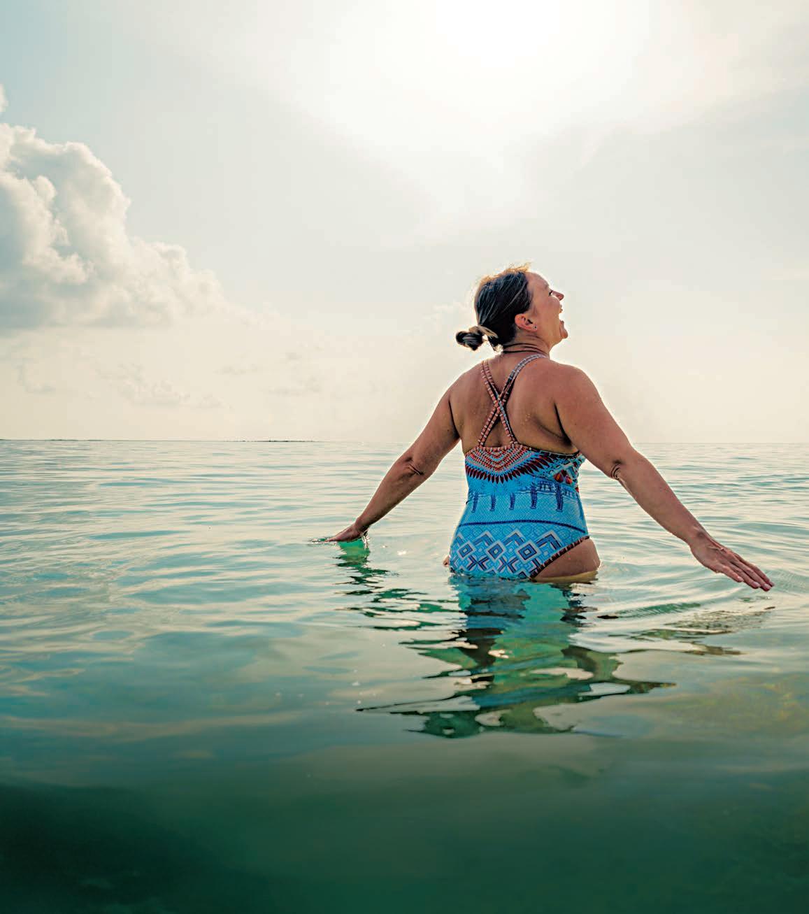 “When I say, ‘I swim at the beach’, I really mean that I play in the waves,” she says with a laugh.