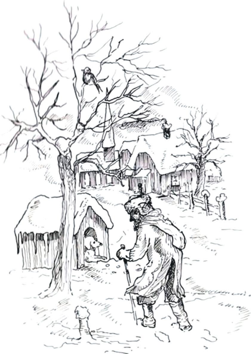 Die Hunde glutz‘n aus der Hütte raus, nie amol zun Frass’n giehn se naus. Der Wend heilt, s‘is werklich zun God derboarmen, die Vögla sein goar die Ärmsten der Oarmen, kän Pfardedreck find‘n se ond kä Körnla, käne Vogelbeer‘n ond kä Wärmla.