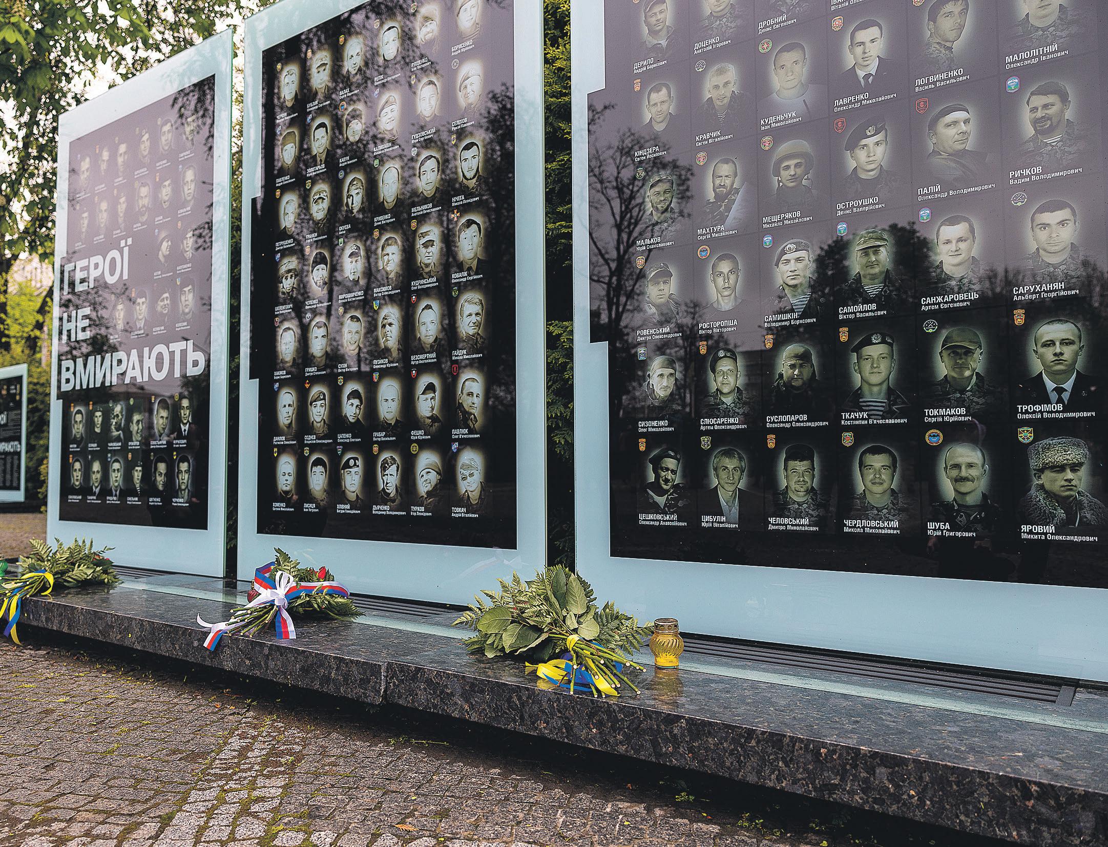 einen Kranz für die gefallenen ukrainischen Soldaten nieder.