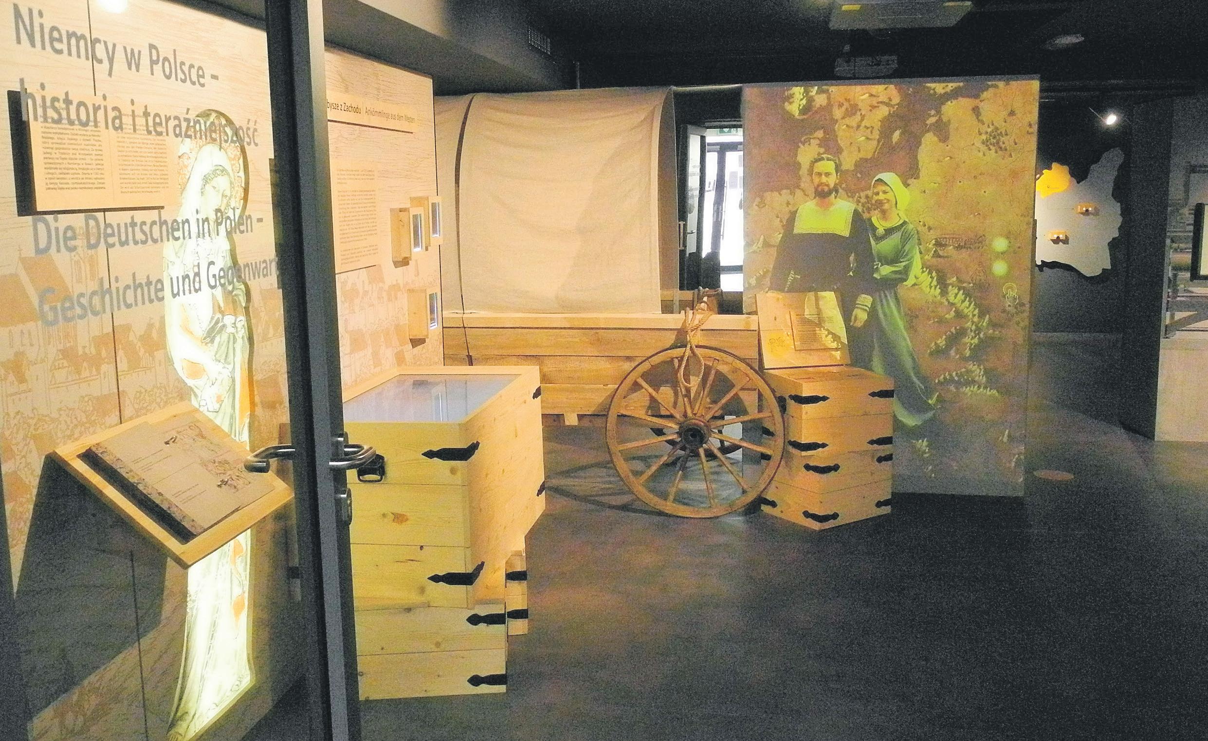 Der Beitrag der Deutschen zur Geschichte Polens, aber auch die wandelnde Ausdehnung Polens werden an Beispielen und multimedialen Schaumonitoren veranschaulicht. Die gesamte Beschriftung ist durchgehend Deutsch und Polnisch gehalten, sodaß die Ausstellung nicht nur eine Vergewisserung der Deutschen als Minderheit ermöglicht, sondern auch ein Angebot für die
