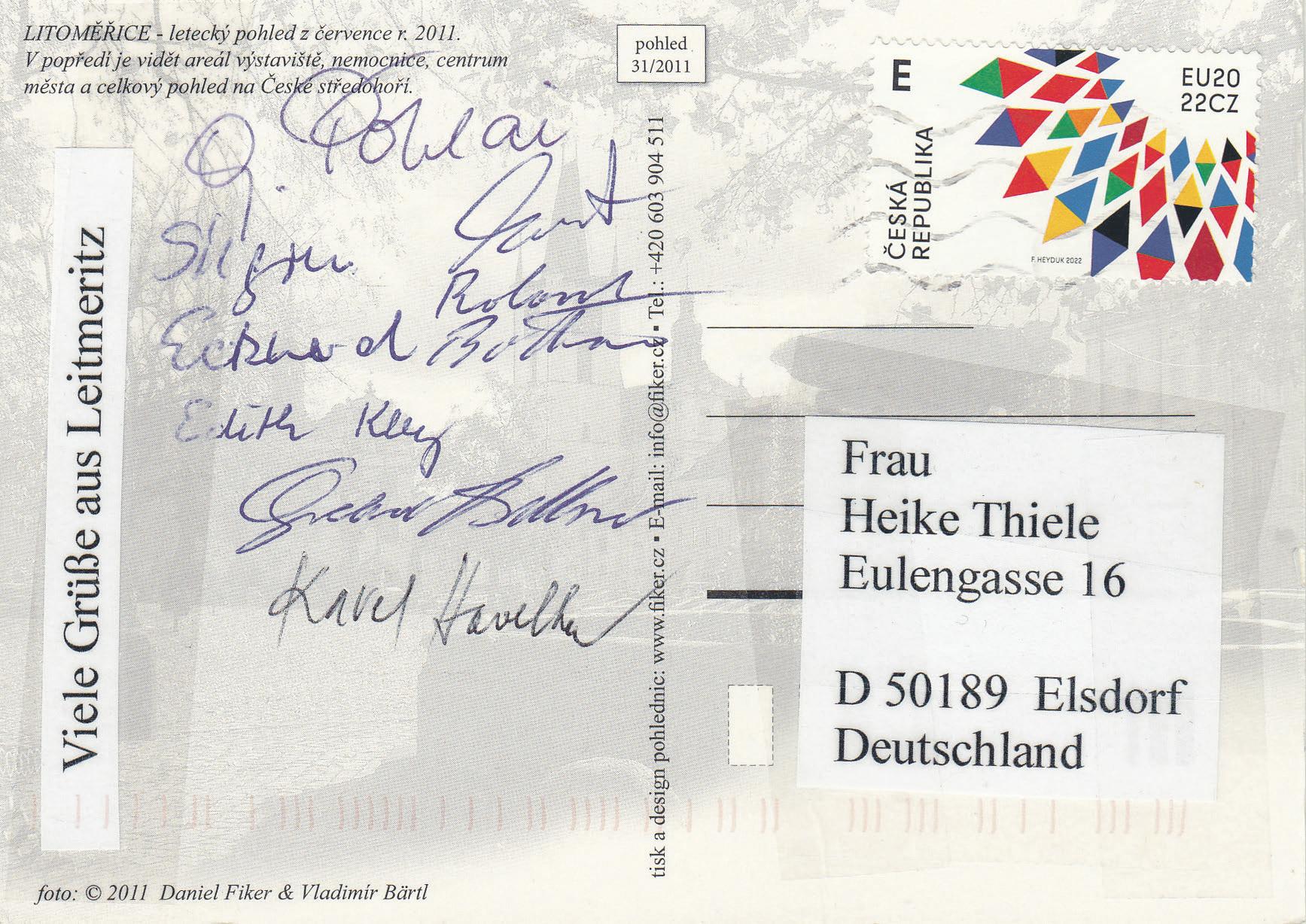 –88. Geburtstag am 01. Juli Ingeborg Suchankova; –87. am 02. Klaus Schleicher; –74. am 10. Eva Papankova; –79. am 19. Jana Dockalova; –85. am 28. August Manfred Hüber; –84. am 30. Rosl Schleicher; –76. am 30. Bruno Fischer; –84. am 27. September Marie Hradkova. Alles Gute auch denen, die nicht genannt sind. Unsere Bücherecke: n Einwohnerverzeichnis der Kurstadt Karlsbad, der Stadt Fischern und der Marktgemeinde Drahowitz. Es handelt sich um die 324 Seiten des äußerst seltenen Adreßbuches von 1938/1939 mit dem Redaktionsstand von 1937. Preis: 29,00 Euro. n Karlsbader Historische Schriften Band 2. Eine kenntnisreiche Betrachtung über Karlsbad als Kur- und Genesungsstadt. Preis: 19,80 Euro. n Karlsbader Schicksalstage 1939 bis 1946. Von Professor Dr. Rudolf Schönbach. Preis: 4,50 Euro. n Zwischen Grenzen und Zeiten. Egerländer Landsleute erzählen, zusammengestellt von Hans Bohn. Preis: 6,00 Euro. Alle Preise inklusive Porto und Verpackung.