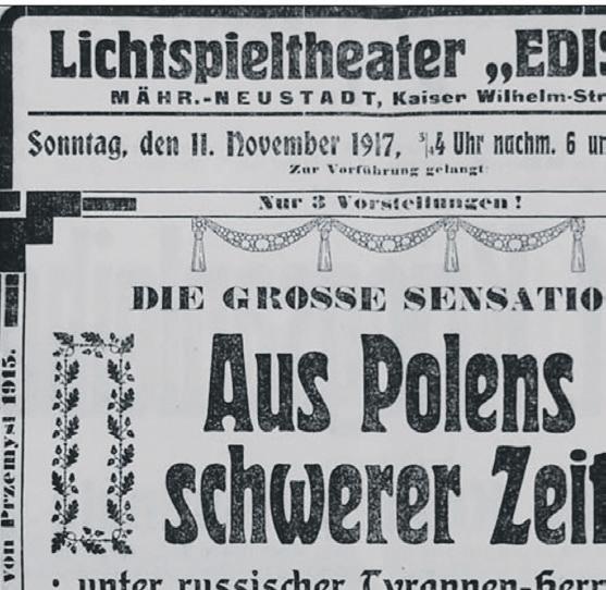 Anfang Februar 1915 mußten die Vorstellungen des Mährisch Neustädter Kinos Edison schon nach acht Wochen wegen einer Pockenepidemie eingestellt werden; neue Darbietungen begannen am 14. März. Zu den beliebten Filmen gehörte zum Beispiel