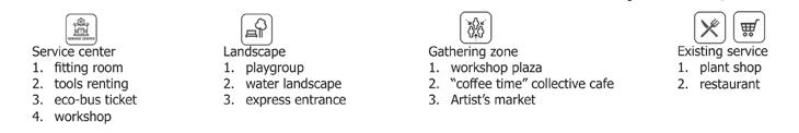 The concept of the gateway is to develop the area into a functional linkage between urban area and the parks. The area is dominated by two hubs and infrastructure will be built in between our hubs. All the design elements and existing services are considered in the proposal. We try to combine the current statement with the gateway which created a more active park entrance.