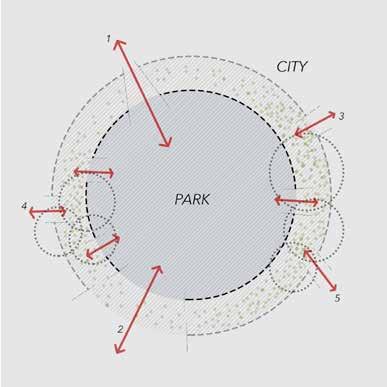 The city “surounding” the park and the identity of thearea are considerd in the design. There is an interrelationthat not only need to be taken into sccount but beemphasized and enhanced. Our proposal creates aconnection between the parks and the surroundings, eachas infrastructure, neighborhood, public transportation.