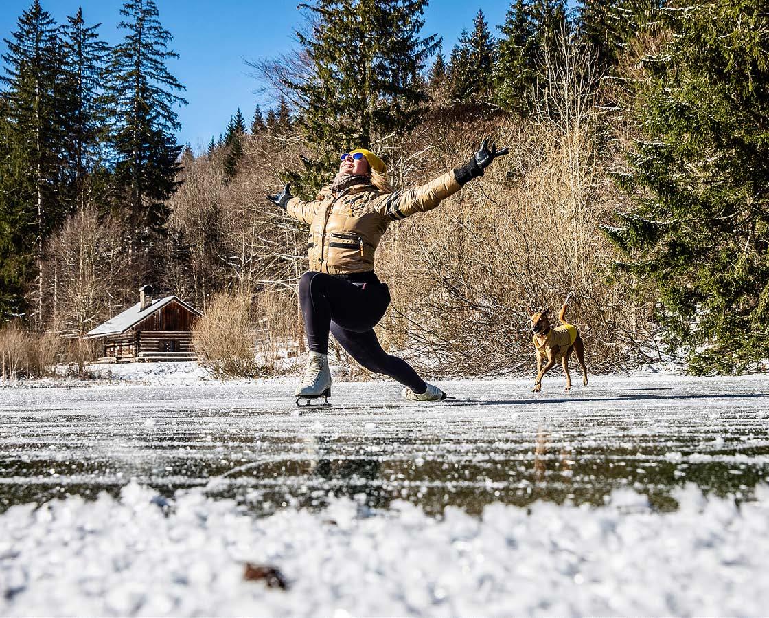 Als ehemalige Eiskunstläuferin zeigt Ihnen Kabarettistin Angelika Niedetzky einige Figuren und unterhält Sie dabei mit einem Best Of ihrer Programme. Also: Schlittschuhe anziehen, mitmachen und (Lach)Muskeln trainieren!