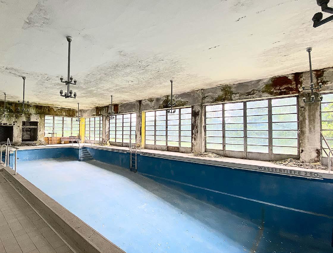 Das Schwimmbad aus dem Jahr 1932 wird der zeit restauriert. Die Bauarbeiten werden für eine
