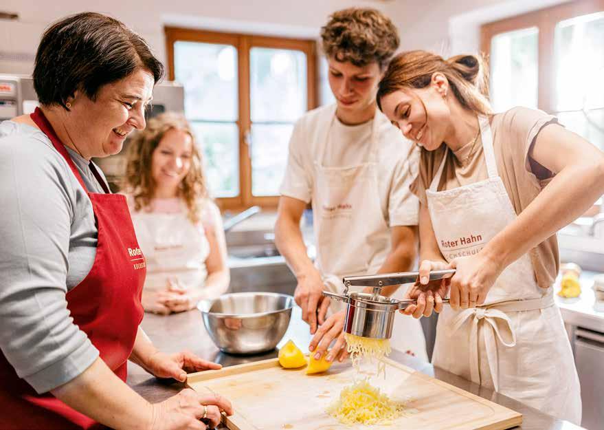 La Scuola di cucina del Gallo Rosso valorizza i prodotti contadini nell’ambito del Distretto del Cibo dell’Alto Adige, propone piatti realizzati con ingredienti di provenienza locale e ricette tradizionali interpretate in chiave moderna.