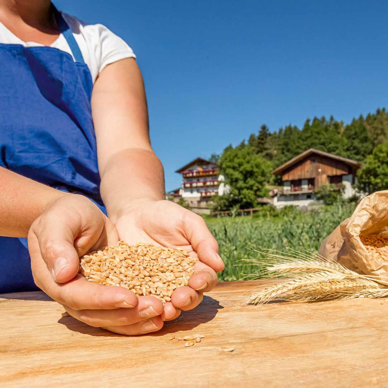 Un lavoro intenso in armonia con la natura e le stagioni. Un sapere antico, tramandato da secoli nella zona alpina, che coesiste e si amalgama con ricette nuove e moderne. Mani esperte trasformano con premura e attenzione i prodotti del campo, della stalla e della cantina fino ad ottenere prelibatezze senza pari. È così che nei masi dell’Alto Adige nascono i prodotti di alta qualità che vi presentiamo in questa brochure. A garanzia di questo livello qualitativo c’è il marchio “Gallo Rosso”, secondo il quale, ad esempio, le materie prime devono essere quasi esclusivamente di produzione propria e solo minime quantità possono essere acquistate da terzi. In questi rari casi, però, i prodotti provengono sempre e solo da altri masi dell’Alto Adige. Al termine del processo di produzione, le pietanze e i prodotti vengono sottoposti a dei rigorosi controlli di qualità e a delle degustazioni (maggiori dettagli a pag. 5).