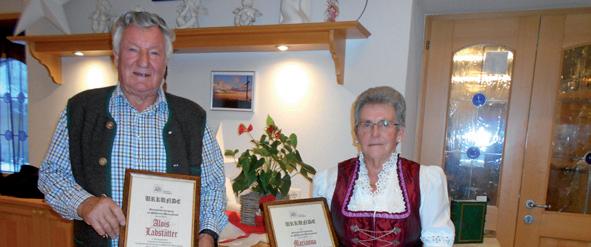 Am 27. Juli starteten 43 Dorf Tiroler Senioren nach Alpbach. Der dortige Pfarrer erwartete uns und wir feierten mit ihm eine ergreifende Messe. Wunderschöne Kirchenlieder, begleitet von Herrn Moser und seinem Kameraden auf Trompete, Flügelhorn und Zither, verschönerten sie. Beim Mittagessen im Alpengasthof Roßmoos gab es dann eine große Überraschung: Unser neuer Ortspräsident Albert Seppi ernannte unseren langjährigen Ortspräsidenten Hias Waibl zum Ehrenobmann und überreichte ihm eine kunstvoll gefertigte Ehrenurkunde. Hias hat vor zwölf Jahren unsere Ortsgruppe gegründet und sie bis zum letzten Jänner mit viel Freude und Einsatz geleitet. Großer Dank gebührt auch den bisherigen Ausschussmitgliedern und seiner Frau Waltraud. Hias bedankte sich ganz gerührt und erntete viel Applaus. Auf dem Heimweg machten wir noch einen Abstecher zum „Lustigen Friedhof“ in Kramsach, wo über einige kuriose Inschriften geschmunzelt wurde. Monika Kuen
