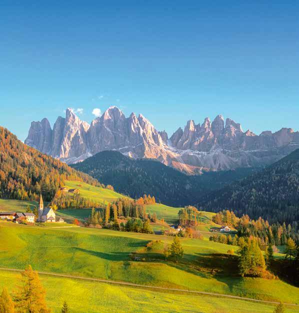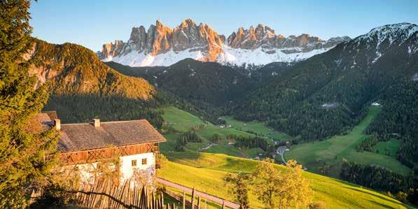 Obstgärten, Reblandschaften und Almen gehen über in dichte Laub- und Nadelwälder und erstrecken sich in Dolomitengipfel und Gletscherwelten. Nur drei Prozent der Gesamtfläche Südtirols sind besiedelt; nach wie vor gibt es gleich viele Bergbauernhöfe wie Hotels. Kultur geht in Südtirol weit über die Besichtigung von Museen, Kirchen und Schlössern hinaus. Allein von letzteren gibt es mehr als 400. Kultur ist hier ein Lebensgefühl, das im alltäglichen Miteinander spürbar ist.