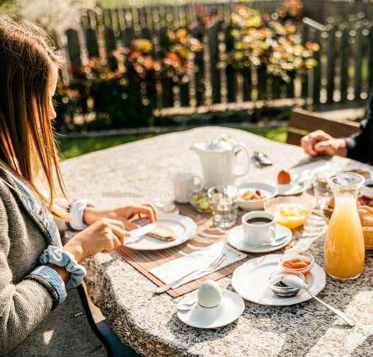 Die Morgensonne blinzelt neugierig durch das Stubenfenster. Am Tisch steht eine Tasse dampfender Kräutertee, der Duft knuspriger Bauernbrötchen erfüllt die Luft. Das macht Appetit auf mehr: selbstgemachte Marmeladen und Butter, leckerer Käse und Speck sind nur einige der Köstlichkeiten am bäuerlichen Frühstückstisch.