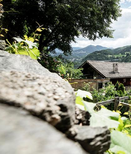 All the houses in the upper town have gardens. In the houses facing the Eisack the garden is accessible via the cellar, while in those facing Säben mountain, it is accessible via the attic! The houses in Klausen’s old town are built on an incline. They seem to be pressing themselves against the rocky Säben moun- tainside as if they are trying to protect themselves from the Eisack river, which puts them at regular risk of flooding. The town’s Italian citizens have coined the expression “the secret gardens of Klausen” to describe the gardens facing Säben mountain be- cause although hardly visible, they offer magnificent views.