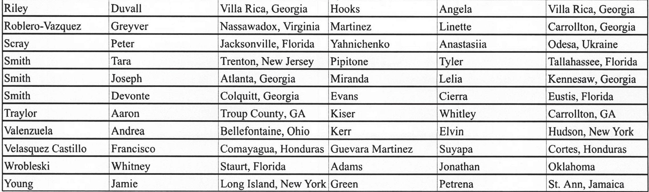 Carroll County MARRIAGE LICENSES JULY 1-31, 2024