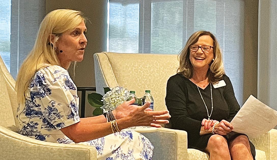 Georgia’s First Lady Marty Kemp was guest speaker, Carrollton Kiwanis Club, Wed., July 31, at Carroll EMC main office. An informal “Fireside Chat” was held between Kemp (left) and Kiwanian Sandra Morris (right). An informed and engaged speaker, Kemp spoke on many topics including mental health issues, human trafficking/GRACE Commission, farming, MATCH, and the pandemic. Photo by Sue Horn