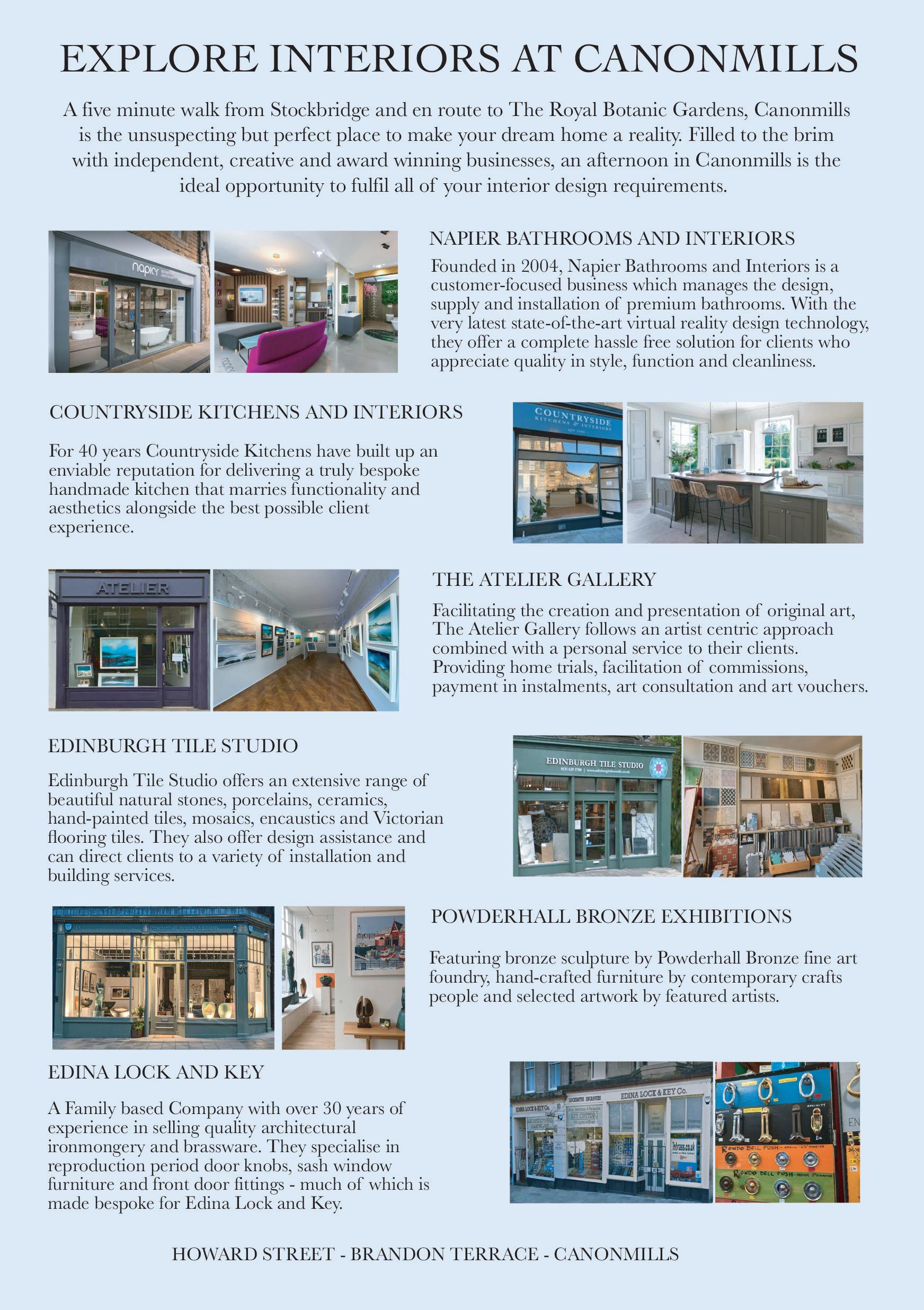 42 Accountants AH & Co Chartered Accountants17 Active Wear Biera 5 Acupuncture Katherine Dandridge 2 Art Galleries The Atelier Gallery 1 Bed Suppliers The Bed Shop 3 Bike Shops Giant Edinburgh 12 Building Services KM Services 9 Ronald G Graham 30 Celebrants Lennie Love 7 Chiropodists New Town Footcare 9 Complementary Therapies Gillian Dalgleish 18 Katherine Dandridge 2 Computing Services AV & PC Home Help 27 Counselling Services Counselling Conversations 37 Decoratoring Services AM Decorating 9 Barry McGuire 10 Elite Decorating 33 Driveways Alpine Paving & Driveways 10 Edinburgh Driveways & Landscaping 39 Electricians KM Services 9 Estate Agents ELP Arbuthnott McClanachan 19 Gibson Kerr 13 Events Nomads Tent - Iconic Iran 8 St Columba's Hospice Firewalk16 Eye Wear Gibson Syme 20-25 Gas & Central Heating Harbour Multi Trades 41 C.A.L Plumbing & Heating 15 Family Law Gibson Kerr 13 Garage Doors Garolla 7 Handyman Services David A Burnett 17 Health & Fitness Griffen Fitness 38 Level Up Personal Training 17 Health Food Shops Real Foods 44 Health & Wellness Slimming World 36 Hospice Care St Columba's Hospice 16 Hypnotherapy Gillian Dalgleish 18 Interior Design Countryside Kitchens & Interiors 31 Jewellers Sheila Fleet 35 Joiners Harbour Multi Trades 41 KM Services 9 Kitchens Countryside Kitchens & Interiors 31 Ladies Clothing Biera 5 Landscaping Edinburgh Driveways & Landscaping 39 Language Tuition Speak Out With Confidence 27 Mortgage Services Malleny Mortgage Solutions 11 Office/Garage Clearance Man/Men With A Van 39 Opticians Gibson Syme 20-25 Organic Produce Real Foods 44 Plumbing C.A.L Plumbing 15 Harbour Multi Trade 41 Paving Services Alpine Paving & Driveways 10 Property Developments Carriden Developments 15 Property Maintenance C.A.L Plumbing & Heating 15 Removals/House Clearances Man/Men With A Van 39 Roofing Services Ronald G Graham 30 Rug/Kilim Repair &Cleaning Nomads Tent 8 Solicitors ELP Arbuthnott McClanachan 19 Gibson Kerr 13 Tile Suppliers Edinburgh Tile Studio 28 Tree Surgeons Heartwood Tree Care 27 Weight Management Slimming World 36 Window Renovation Craftworx 7