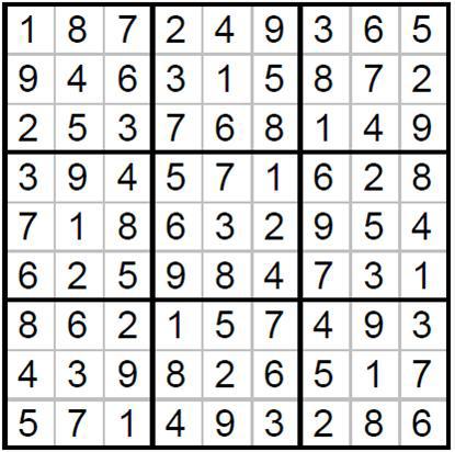 Fill in the grid so that every row, every column and every 3x3 box contains the digits 1 through to 9 with no repetition!