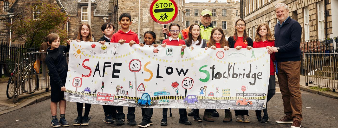 highlighting the speed limit and making the presence of a school more noticeable to drivers. It’s rewarding to live in a bustling community, yet liveliness comes with particular challenges for parents and carers. As I discovered, negotiating risk is second nature for adults, but kids’ brains haven’t developed that capacity yet. Thankfully, we know that the holistic “Safe Systems” approach works: if the speed limit is observed, and good intuitive street design is in place, then collisions are less likely; and crucially, if mistakes are made and the unthinkable happens, risk of serious injury and life-changing outcomes is vastly reduced. This year, our campaign highlighted speed awareness, but this is just the beginning for Safe, Slow Stockbridge. In the coming months and years, we aim to reduce traffic at the school gates by piloting walking buses. We will campaign against hazardous parking, and work with Inverleith ward councillors to secure more crossings and street design improvements. Ultimately, we want to make the pupils’ point of view more tangible. If more adults understand what kids can and can’t see - literally and figuratively - we hope it will ensure a safer and more pleasant Stockbridge for everyone.