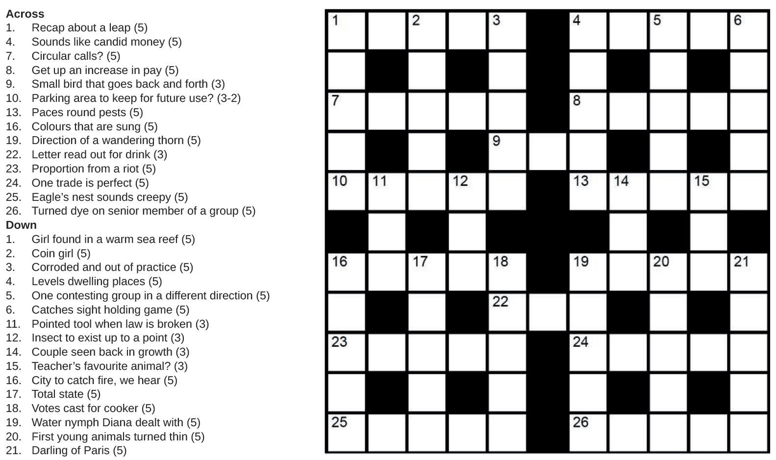 38 Mini Cryptic Crossword (Soln on pg 41)
