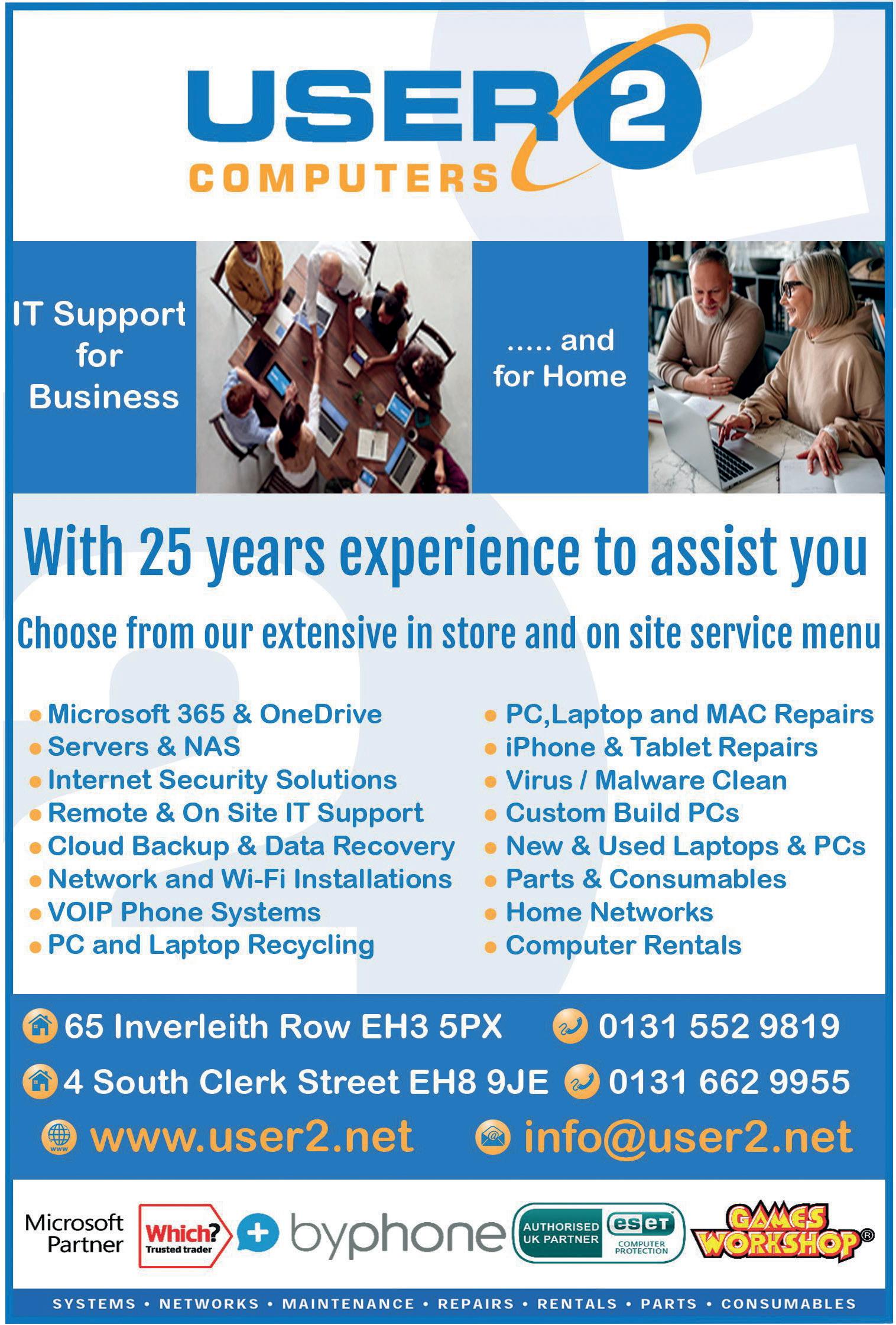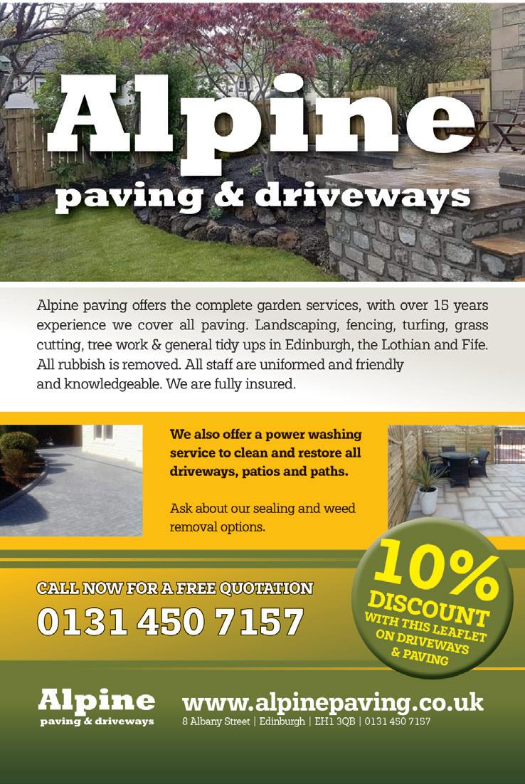 50 Accountants Cowan & Partners 16 Aerial/TV Services Access Electrical 9 Architectural Services The House Story 39 Art Galleries/Exhibitions Powderhall Bronze Editions 12 Bathroom Design Bathing Mobility Advisory Service 13 Raison Home 16 Beauty/Skin Therapists Elevate Aesthetics 7 Bedroom Design Raison Home 16 Bed Suppliers The Bed Shop 5 Bike Shops Edinburgh Bike Coop 2 Blind Suppliers Bomar 18 James Erskine 41 Book Launch Emma Steele 29 Building Services KM Services 22 Penplaid 8 Care At Home Seasoned Hands Care 51 Carpets & Flooring Bomar 18 James Erskine 7 Carpet & Upholstery Cleaning Chores At Work 21 Childrens Activities Edinburgh Academy Summer Holiday Camps 11 Complementary Therapies Gillian Dalgleish 25 Computer Services AV & PC Home Help 46 User2computers 40 Curtains & Blinds Bomar 18 James Erskine 41 Decorating Services AM Decorating 41 Craighall Decorators 45 EH5 Decor 28 Door Specialists Celsius Windows 19 J & L Joinery 41 Driveways Aileen Rankin Designs 28 Alpine Paving & Driveways 21 Edinburgh Driveways & Landscaping 47 Edinburgh City Council Low Emission Zones 26 Electricians Access Electrical 9 KM Services 22 Estate Agents Donaldson Property 3 ELP Arbuthnott McClanachan 30/31 Gibson Kerr 36 Events Foodies Festival 27 Garden Design Aileen Rankin Designs 28 Good Garden Design 10 Gardening Interest Royal Botanic Gardens Fleurs De Villes 15 Gardening Services Avant Gardening 7 JDS Gardening 43 Gas & Central Heating Harbour Multi Trades 20 JHP Services 35 Scott Findlay Plumbing & Heating Engineers 17 Going Out Edinburgh Uncorked Wine Fair 1 Foodies Festival 27 Powderhall Bronze Foundry Tours 12 Royal Botanic Gardens Fleurs De Villes 15 Handyman Services House Hero 37 Health & Fitness Griffen Fitness 47 Health Food Shops Real Foods 52 Health & Wellness Slimming World 32 Hearing Services Hear Here 21 Hypnotherapy Gillian Dalgleish 25 Joinery Services George Laird Joinery 10 Harbour Multi Trades 20 J & L Joinery 41 Local Joiner Ross McLean 13 Penplaid 8 Kitchen Design Raison Home 16 Landscaping Services Aileen Rankin Designs 28 Edinburgh Driveways & Landscaping 47 Language Tuition Speak Out With Confdence 33 MP Surgeries Deidre Brock 9 Organic Produce Real Foods 52 Paving Services Alpine Paving & Driveways 21 Photographers Stork Photography 13 Plumbing Services Harbour Multi Trade 20 JHP Services 35 Scott Findlay Plumbing & Heating Engineers 17 Renovations The House Story 39 Rug Suppliers Rug Cottage 9 Roofing Services Edinburgh Roofing 44 Gallen Roofing 13 SPM Roofing 24 Solicitors ELP Arbuthnott McClanachan 30/31 Gibson Kerr 36 Travel Services Connoisseur Travel 23 Tree Surgeons Trees4scotland 37 Upholstery James Erskine 22 Weight Management Slimming World 32 Window Renovation Craftworx 37 Window Suppliers Celsius Windows 19 Wine Tastings Edinburgh Uncorked Wine Fair 1