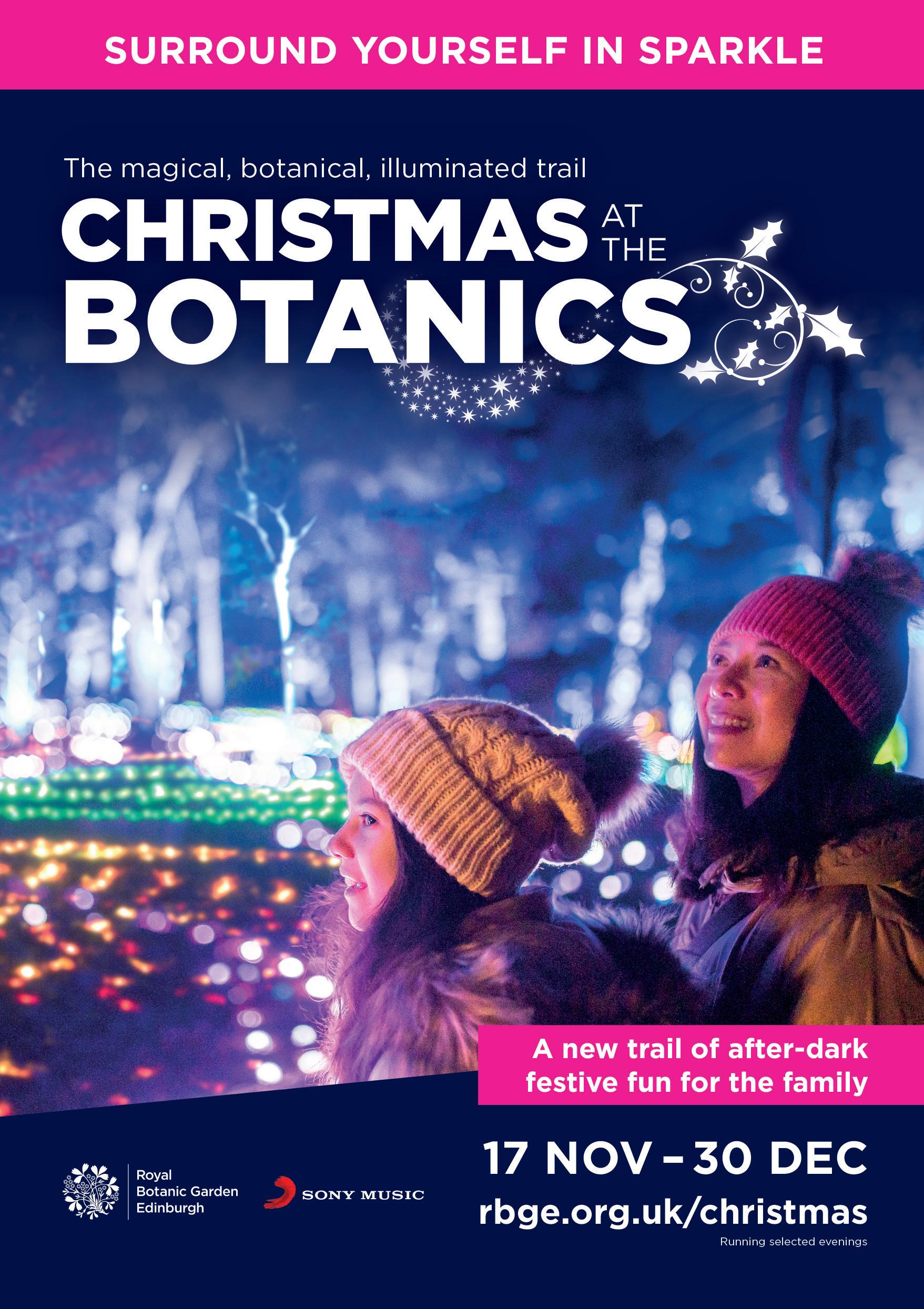Christmas at the Botanics is one of 14 illuminated trails staged across the UK by leading events promoter Raymond Gubbay Limited, a division of Sony Music. Christmas at the Botanics is presented in partnership with the Royal Botanic Garden Edinburgh and creative producer Culture Creative.