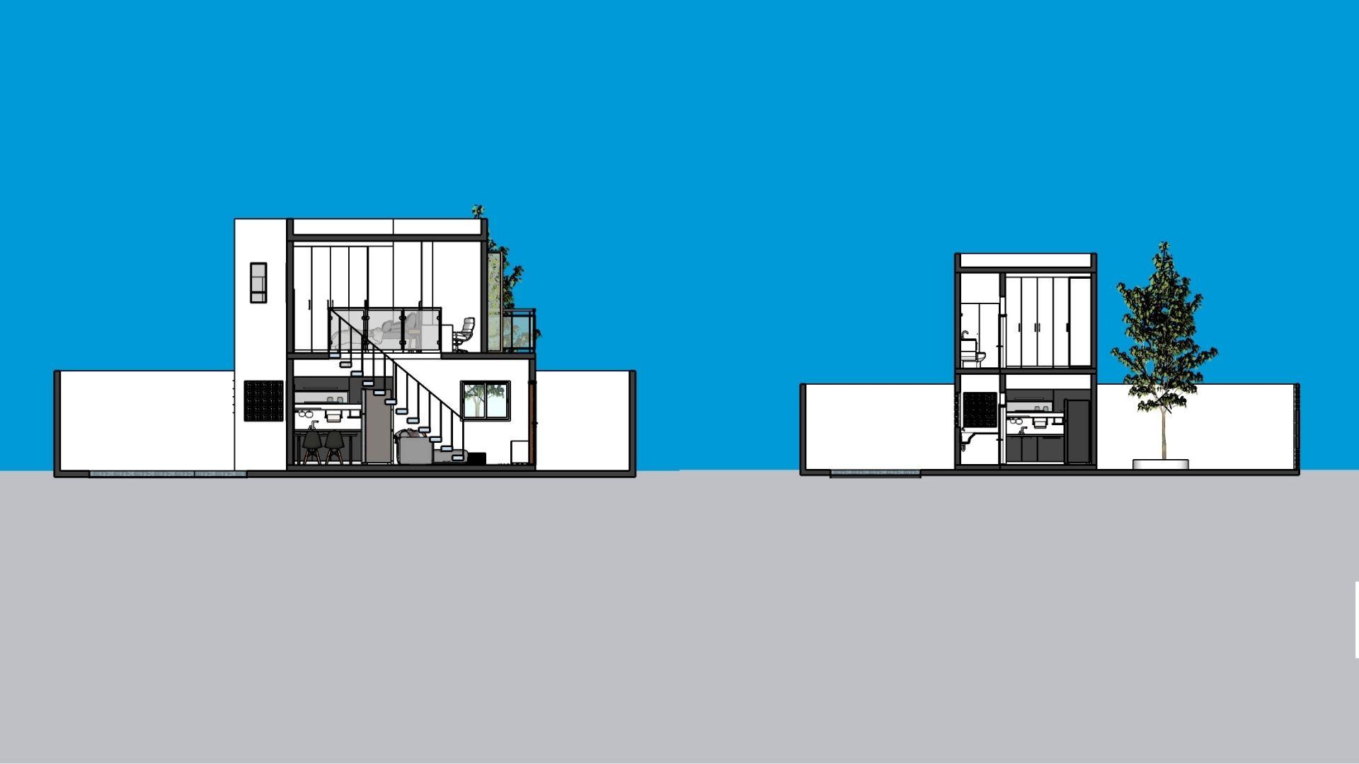 No pavimento térreo, buscou-se uma integração entre sala de estar, sala de jantar e cozinha, de forma a otimizar o aproveitamento dos espaços, uma vez que o uso de paredes de torna mínimo. Ao lado cozinha também foi construída uma lavanderia que atende perfeitamente a demandas de uma pessoa. No pavimento superior, foi instalada a suíte e um pequeno escritório, proporcionando uma área estudo e trabalho parcialmente separada do dormitório.