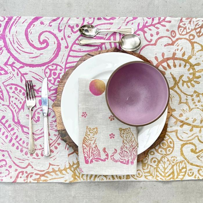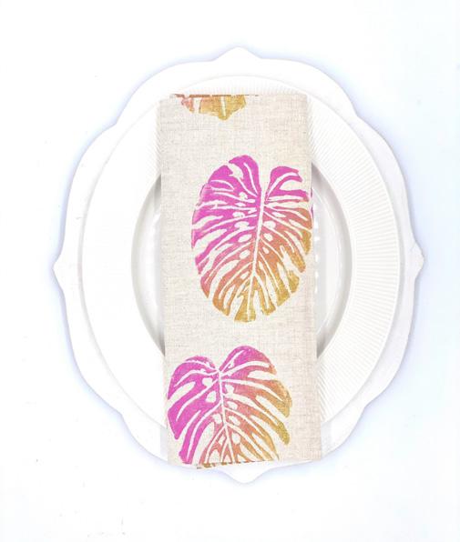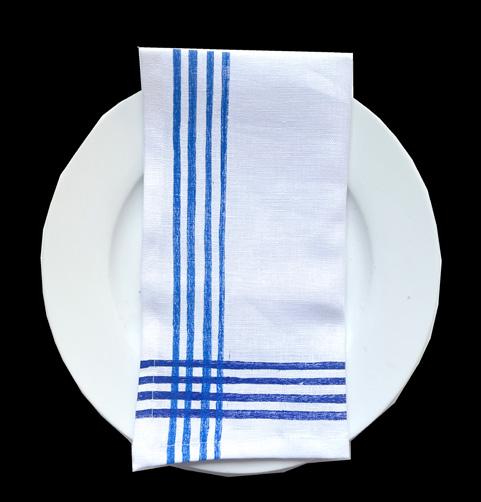 Shibori & Printed Napkins 18 x 18” Set of 4 linen napkins bound in branded Tulusa cuff. $32 per set/4 set minimum per color and pattern