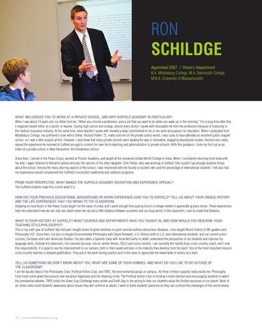 RON SCHILDGE Appointed 2007 / History Department B.A. Middlebury College, M.A. Dartmouth College, M.B.A. University of Massachusetts