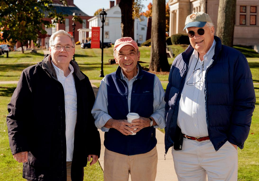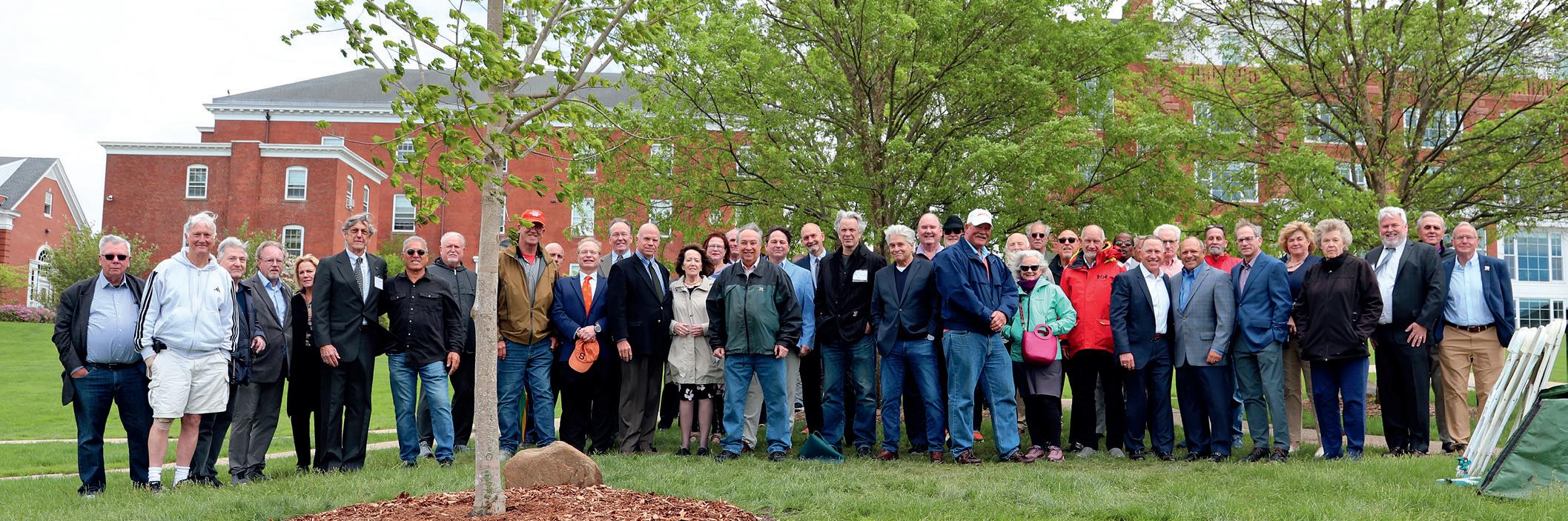 Members of the Suffield Academy community gathered on May 10, 2025, to honor the life and legacy of legendary wrestling coach Frank Peraino, whose influence stretched far beyond the mat. The memorial service was a heartfelt reflection of Frank’s devotion to his athletes, colleagues, and the Academy community. Alumni from all over the country came together on Bell Hill, sharing stories that painted a vivid portrait of a man whose quiet strength and steadfast mentorship shaped young lives. The event was a testament to the care and collaboration of those who helped bring it to life. Martin Sbriglio ’74, Tom Flagg ’74, and Peter Moritz ’72 were instrumental in organizing the service, ensuring the details reflected the dignity and warmth Frank embodied. Frank's longtime partner, Ann Weidenfeller, was also in attendance. Deep appreciation is owed to Peter Moritz, whose generous gift of a tree now planted on campus in Frank’s honor will serve as a living tribute. Following the service there was a gathering in Memorial Building where stories flowed as freely as the laughter and tears they brought. It was abundantly clear that Frank was more than a coach—he was a compass, guiding students through the challenges of youth toward the steadiness of adulthood.