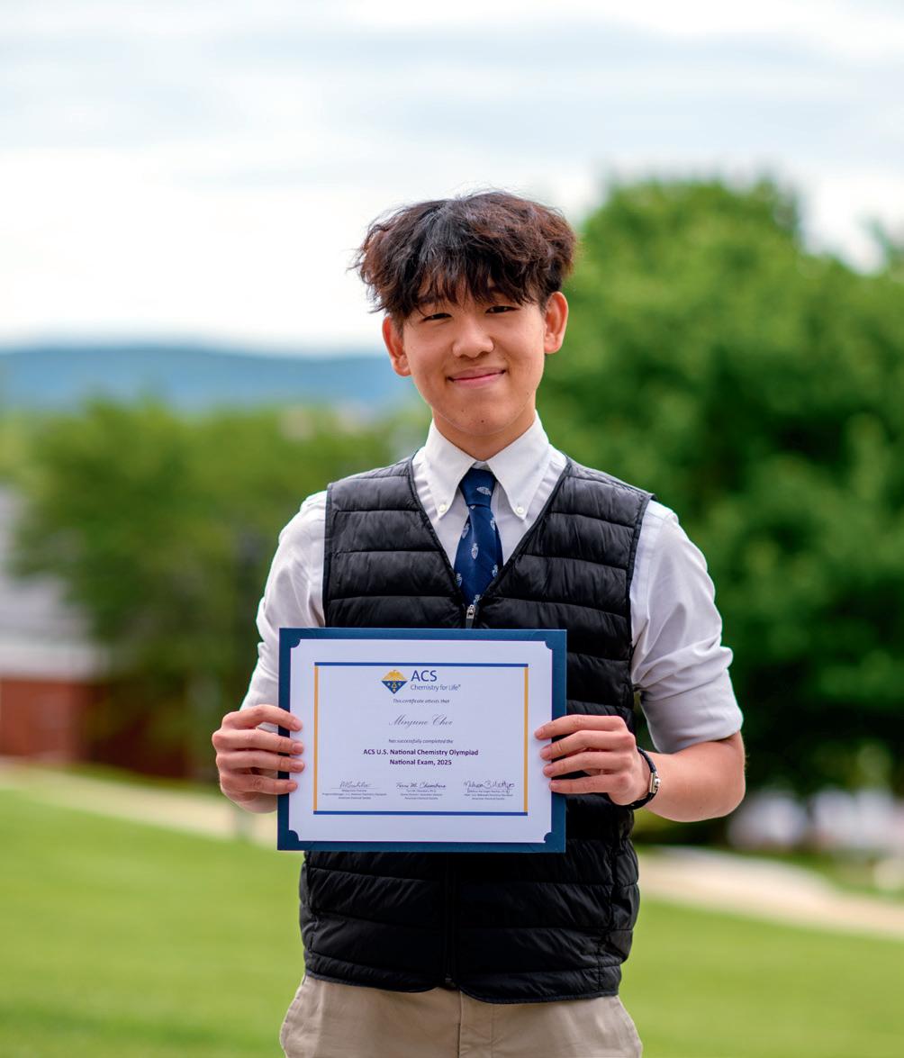 This year, MJ Choi ’26, who is a four-year senior from Seoul, South Korea, earned national Honors, placing in the top 150 out of more than 16,000 students. After scoring in the top 15% statewide on the qualifying exam during March break, MJ advanced to the national round in April, competing against 1,000 of the country’s strongest chemistry students. He ultimately placed in the top fifth nationally and received an Honors Certificate from the American Chemical Society for his outstanding achievement.