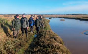 Scanning around we picked up a number of Common Buzzards, in ones or twos over different wooded areas, with a flock of four also seen. The same or possibly another Marsh Harrier caused a large group of frightened Lapwing to fly up, along with a smaller party of Golden Plover and Curlew. The group retraced their steps this time heading south along the footpath towards Kirton Creek. Groups of waders and ducks were on the far shore and included Grey Plover, Lapwing, Dunlin, Wigeon and some Black-tailed Godwit flew down river. Justin then found a lovely male Red-breasted Merganser mid-river; a species that is very scarce on the Deben compared to the Orwell and Stour. On an area of saltmarsh close to Kirton Creek, at least two Jack Snipe and eight Common Snipe were encountered. At the Creek itself it was very quiet bird-wise and a discussion was triggered about the removal of the scrub and bramble from the river wall by the Environment Agency, including a section of scrub that historically supported roosting Long-eared Owls.
