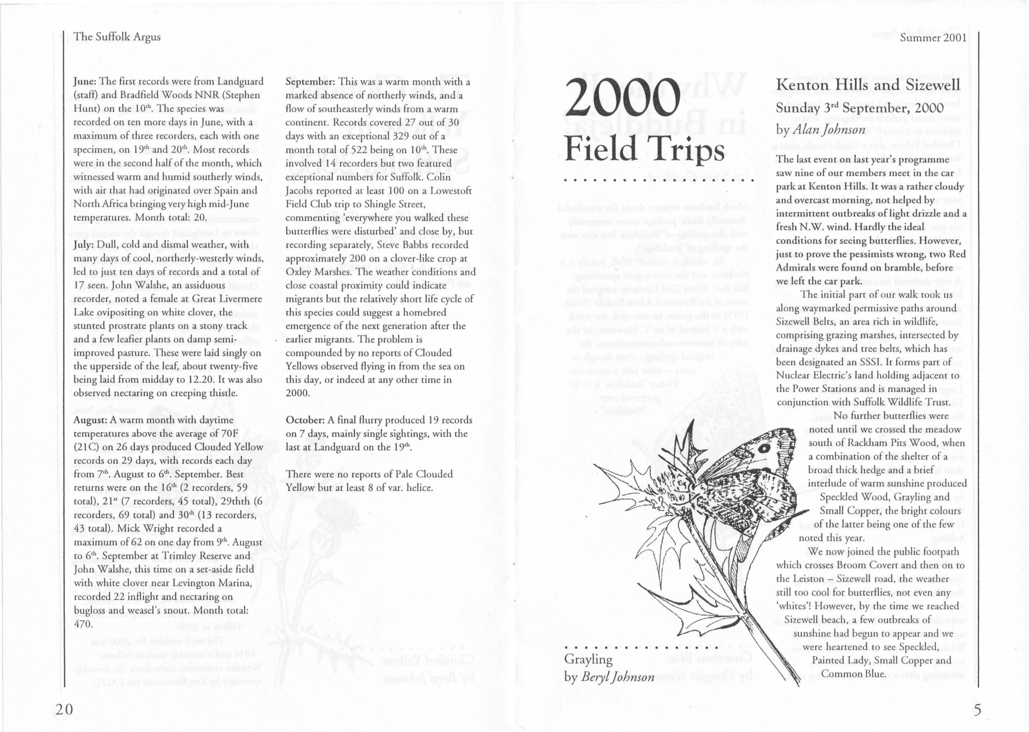 Note: 2000 Report, Argus 22, p.21 - the record of the Painted Lady at Spa Gardens Felixstowe on 5'h. November should have been two, not one, recorded by Jean and Ken Garrod.·