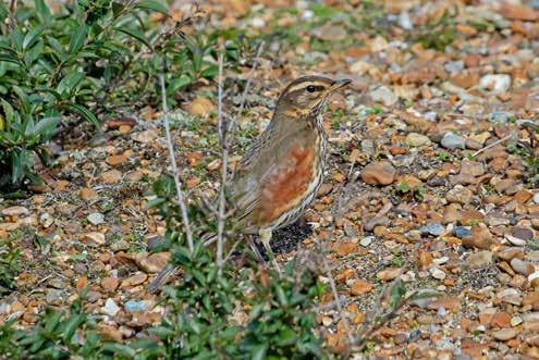 in excellent numbers; an estimated 12000 Redwing at Trimley Marshes on the 11th and over 4400 at Kirton Creek the following day with approx. 350 Fieldfare at the same time and place. A Spotted Flycatcher was around Southwold between 3rd and 14th. A Pied Flycatcher at Hollesley on the 7th. Black and Common Redstarts were seen throughout the month at coastal sites. There were two Whinchats sighted at Shingle Street on the 10th. Tree Pipits were in evidence; on the Alde Estuary (4 on the 4th), Hollesley (2 on the 4th), Walberswick (2 on the 7th) and Landguard (10th). Water Pipits were present with two north of Corton churchyard on the 17th, one at Hollesley on the 22nd, three at Carlton Marsh from the 24th to 26th and one by the Orwell Bridge on the 29th. Twite showed up in numbers from the 23rd to the end of the month at Dunwich with a maximum of 20+ plus a colour-ringed specimen noted on the 28th and three likewise the following day. A Mealy Redpoll was trapped at LBO on the 7th. Hawfinch were seen around Lowestoft, Thorpeness, Aldeburgh, Landguard and Mildenhall early in the month. Snow Buntings were around Southwold, Walberswick, Shingle Street and Felixstowe Ferry at the tail end of the month whereas Lapland Buntings were sighted early doors in Corton, Benacre, Walberswick, Aldringham and Landguard.